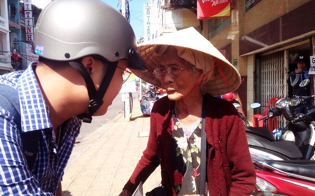 Trong đó có cụ bà Ngô Thị Quýt, 83 tuổi, bị mù hai mắt, hằng ngày chống gậy đi bán vé số khắp nơi. Hỏi cụ có biết ai là người hay phát tiền tháng hay không, cụ nói: "Tui mù có thấy gì đâu! Nhưng nghe tiếng xe và giọng nói là tui biết cậu đó đến phát tiền".
